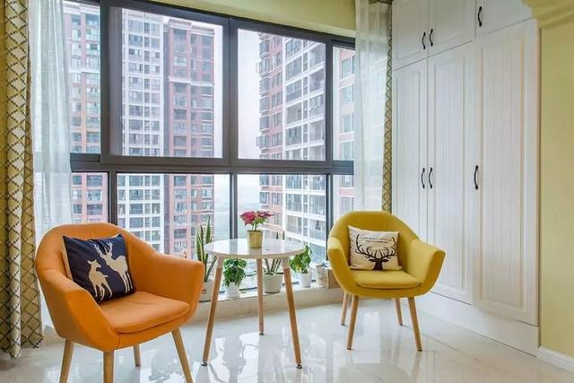 客厅外的阳台利用垭口并入到客厅中来,充满了层次感。放上一张小茶几,两张舒适的小沙发,一个安静的休闲区就这样打造出来了。
