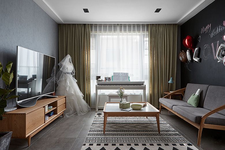 沙发附近可以放一个小收纳柜或者边几,用来放平时可能用不上的遥控器、杂志、暂时不想吃的零食。