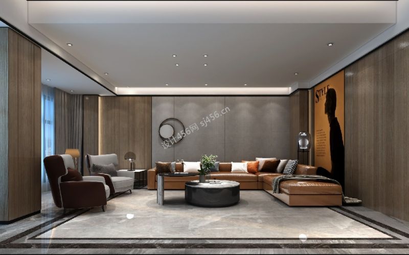 现代风格四室客厅沙发装修样板间