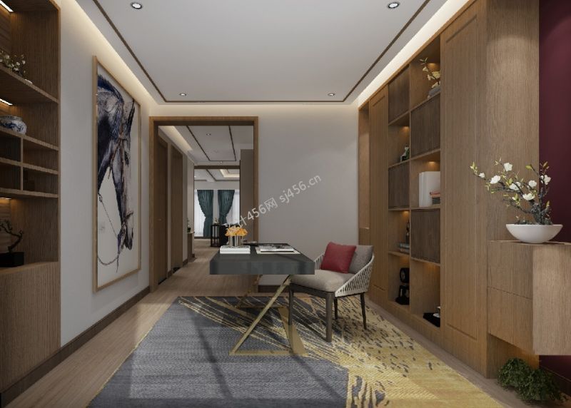新中式风格复式书房装修设计图