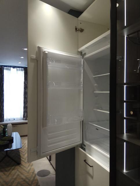 如果你觉得冰箱、烤箱、蒸烤一体机独立摆放浪费空间又影响美观,那你可以选择厨电内嵌设计。像欧铂丽米兰风尚系列的厨房,就设计了内嵌式冰箱,空间整体性极佳,厨房格调绝对会甩别人一条街。当然,在橱柜设计之初,你需要提前确定家电的型号尺寸,为其预留位置。