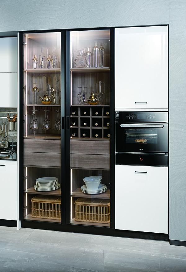 现在喜欢红酒、威士忌的人越来越多,酒类存储、高脚杯收纳的需求也增多。欧铂丽酒柜设计,让橱柜功能更加完善,自然是爱酒人士的必备之选。铝框玻璃门酒柜以及开放式酒柜设计,兼具红酒展示、收纳功能。不仅让红酒拿取更方便,也瞬间提升厨房颜值。