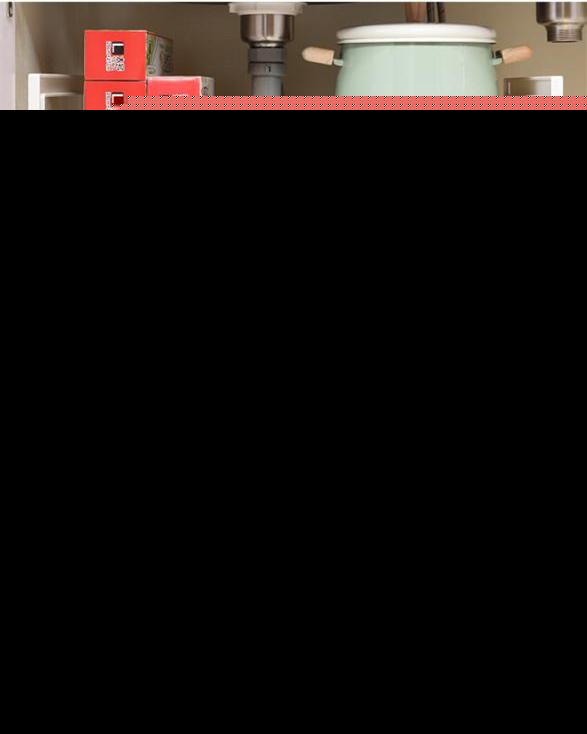 不规则收纳巧妙避开水管等不规则物体,存放清洁用品或不常用物品。一个隔板插件让单一空间变三重空间,再多的餐具也能井然有序。