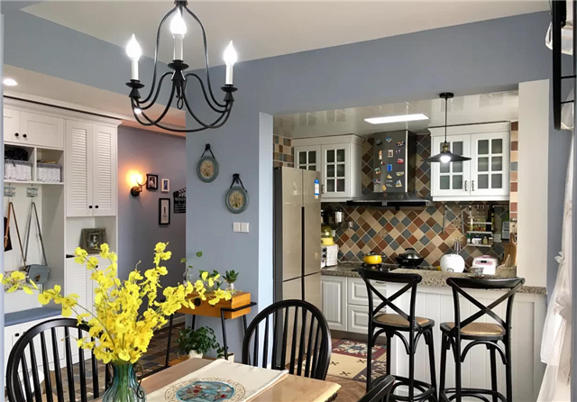 这是厨房,厨房本身空间比较小,操作台面受到限制,就把小吧台当做厨房和餐厅中间的隔断,不仅仅方便操作,也方便平时两三个人当做吧台用餐。