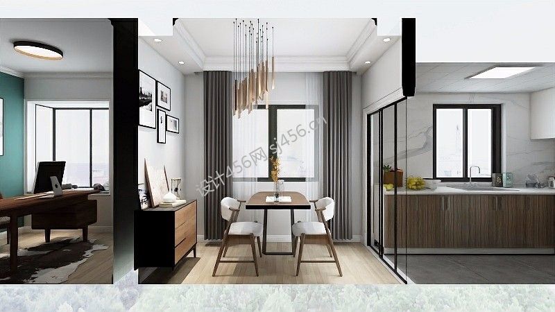 115平米现代简约三室两厅餐厅吊顶设计效果图