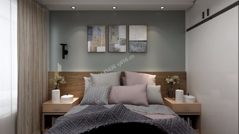 115平米现代简约三室两厅卧室背景墙设计效果图