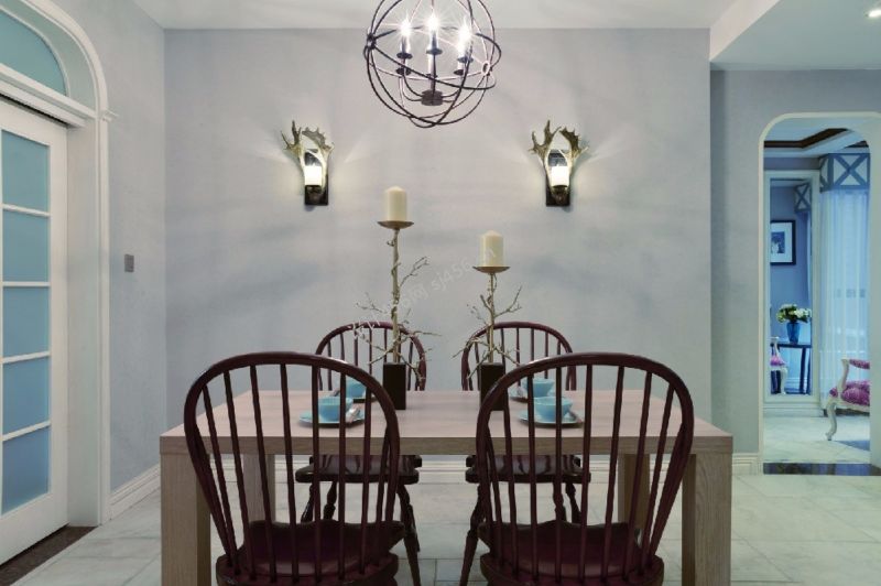 104平米美式田园风三居室餐厅吊顶装修效果图