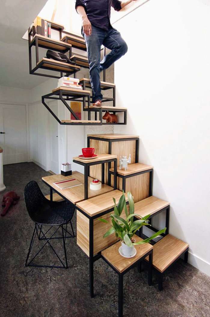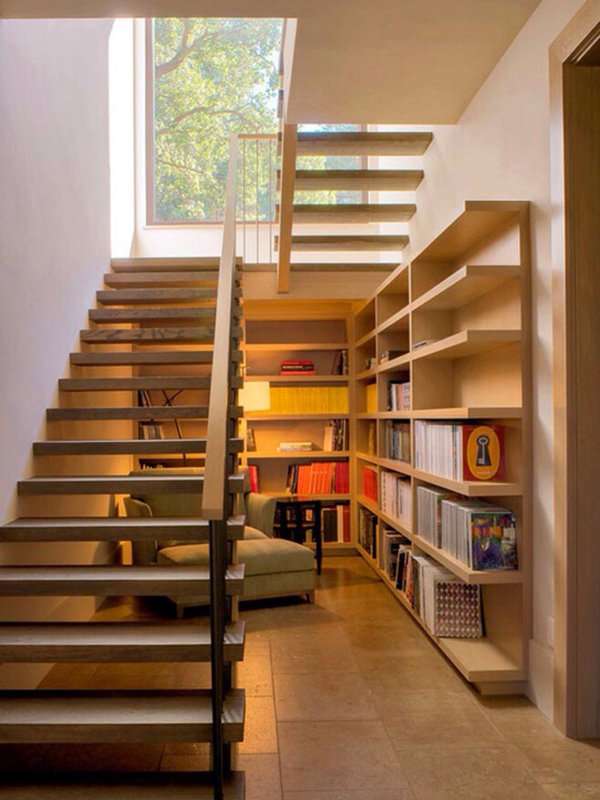 不做抽屉,直接做个踏板,里边塞上书,拿取方便,直接坐在楼梯上就开始读书吧。
