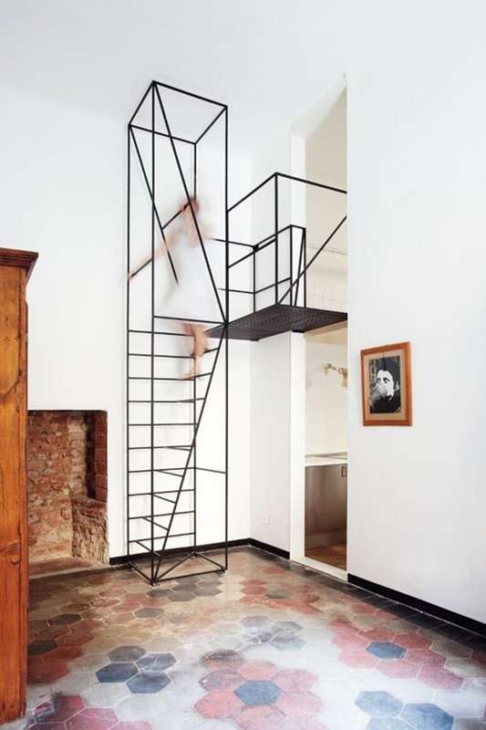 这种极简风格的楼梯美极了,看一眼就爱上。占地空间小,只要适应了一根棍式的梯子就行了。
