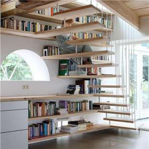 做书架的好处就是可以摆放下好多书,而且上下楼梯时顺手就可以拿到书。
