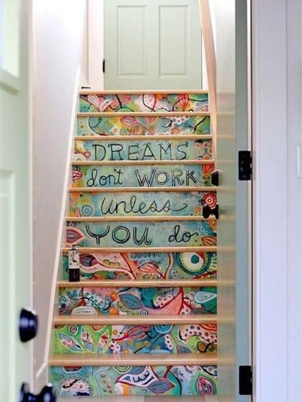 如果你有绘画基础的话,自己动手画,有个性的楼梯就是家里最美的风景线。