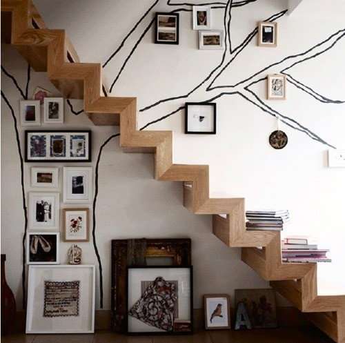 3.楼梯墙也不能空着啊,摆照片、做书架,置物架都很好。
