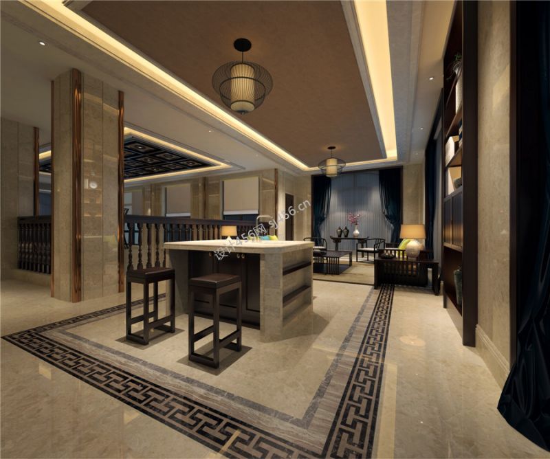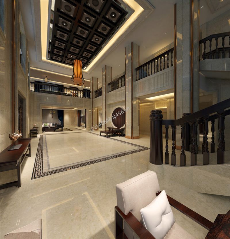 别墅走廊装修效果图 2020别墅走廊吊顶效果图