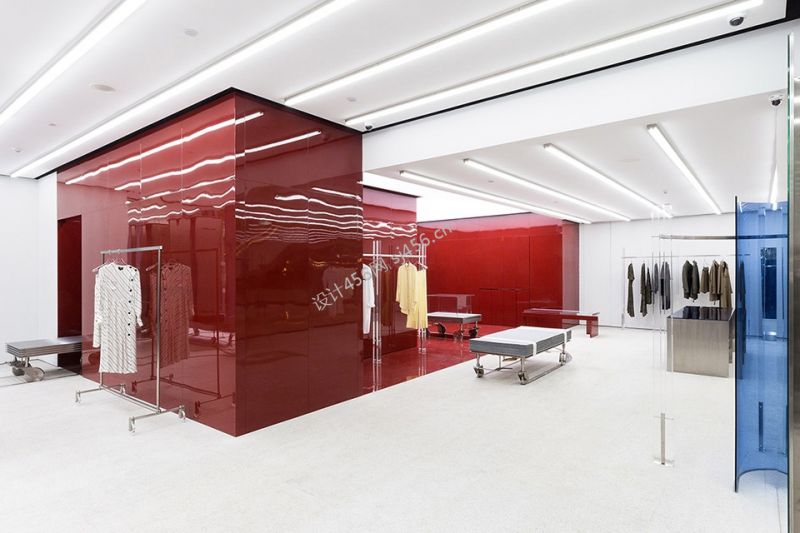 100平米极简色彩服装旗舰店吊顶装修效果图