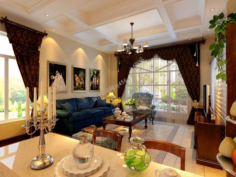 美式田园风格客厅窗户装修效果图片