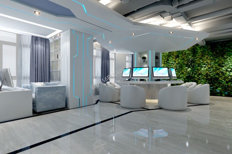设计理念: 本案例位于金广路米络网咖,是由蓝柚设计机构设计的一间多功能型网咖。简洁的线条,简单的配色,一切从简,在有效控制造价的同时,让空间显得更具个性和舒适感。在空间划分上,设计师合理的把空间划分为普通散座区,竞技区,对战区,五号黑房,休闲区,VIP区,异性区等多个空间,既有条有系又增加了新鲜感。纵观整体设计,设计师在满足了业主对于网咖的所有功能性要求之外,还有效的控制了装修的整体造价,并为所有顾客提供了与众不同的上网空间。 不规则的几何体切割,深邃幽蓝的灯带,让空间独具一格。灯光设计是网咖设计的重点,灯光过重会影响消费上网体验,灯光不够,整个网咖又缺少氛围,冷暖对比显得尤为重要。 本案例位于金广路米络网咖,是由蓝柚设计机构设计的一间多功能型网咖。简洁的线条,简单的配色,一切从简,在有效控制造价的同时,让空间显得更具个性和舒适感。在空间划分上,设计师合理的把空间划分为普通散座区,竞技区,对战区,五号黑房,休闲区,VIP区,异性区等多个空间,既有条有系又增加了新鲜感。纵观整体设计,设计师在满足了业主对于网咖的所有功能性要求之外,还有效的控制了装修的整体造价,并为所有顾客提供了与众不同的上网空间。 不规则的几何体切割,深邃幽蓝的灯带,让空间独具一格。灯光设计是网咖设计的重点,灯光过重会影响消费上网体验,灯光不够,整个网咖又缺少氛围,冷暖对比显得尤为重要。
