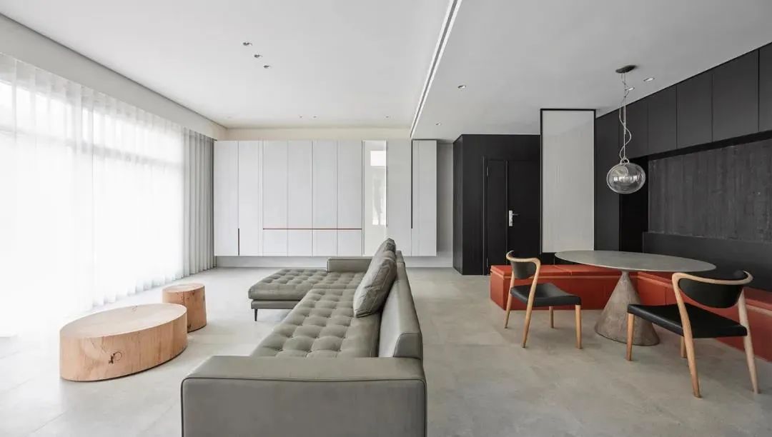 在一些大面积客厅或客餐厅不分区的户型中,沙发的大体积与长条形可以完美的充当隔断使用来划分空间,还能保持空间的通透性。