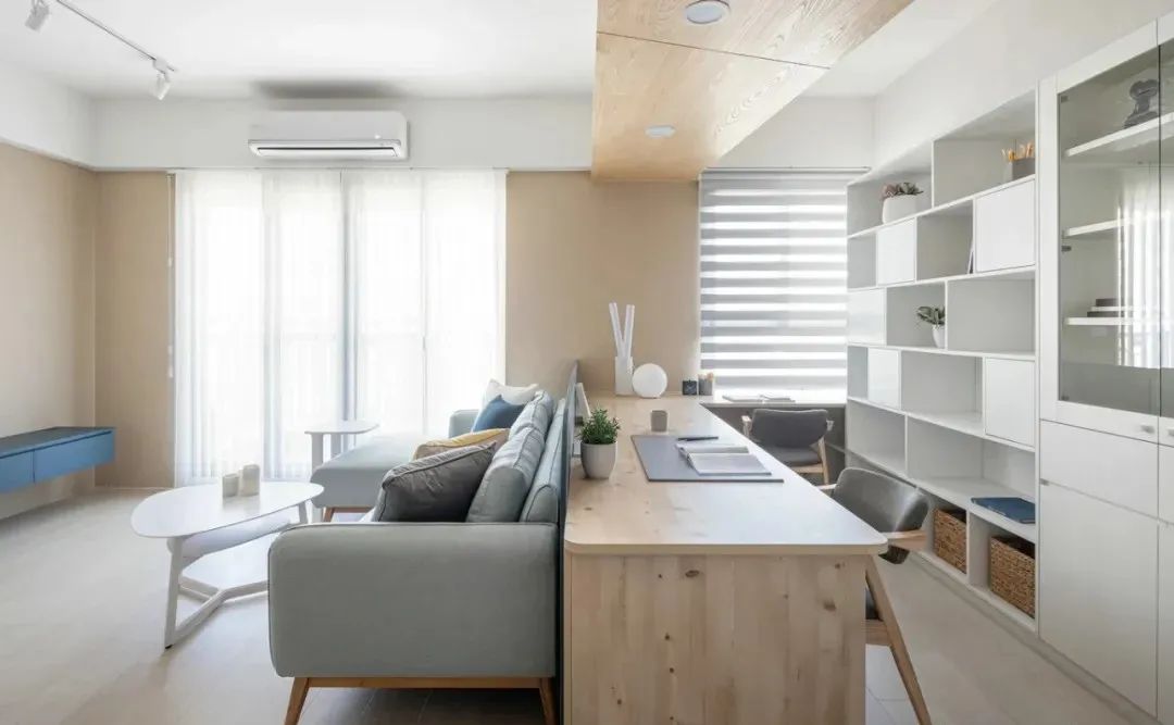 两个空间一体是能让空间显大的方式,但如果没有隔断的话,又有点凌乱,单独做个隔断又有点分离和死板。