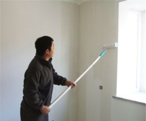 5.底漆施工。腻子打磨清洁浮尘后即可进行下一步底漆施工,刷底漆一定要均匀,一般刷一遍即可,底漆完全干透后(一般2-4小时,具体看情况而定)再进行下一步施工。