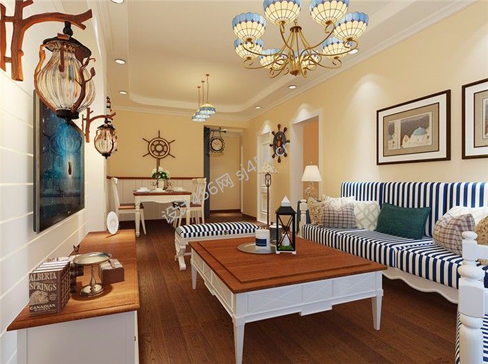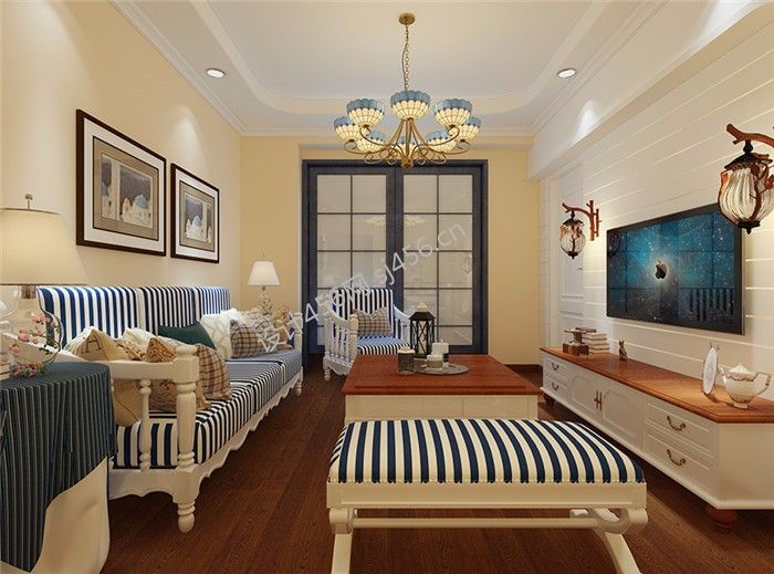 详情简约地中海风格三室两厅客厅装修效果图