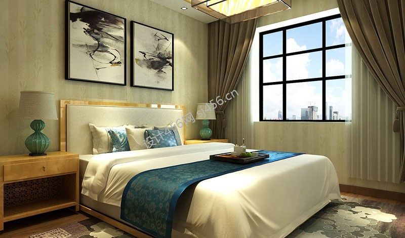 详情简约新中式卧室整体装修效果图