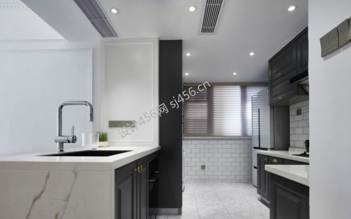 美式风格103平米厨房吧台造型装修设计