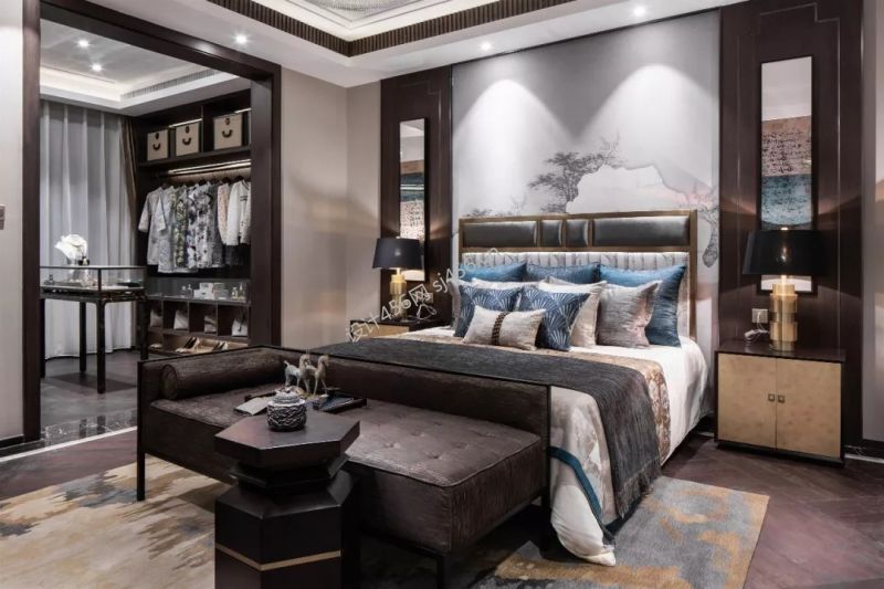新中式风格180平米卧室背景墙家装效果图
