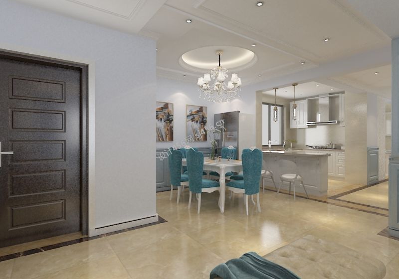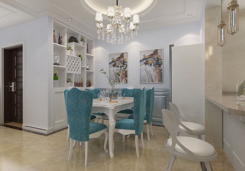 简欧风格115平米三居室客厅餐厅隔断装潢效果图