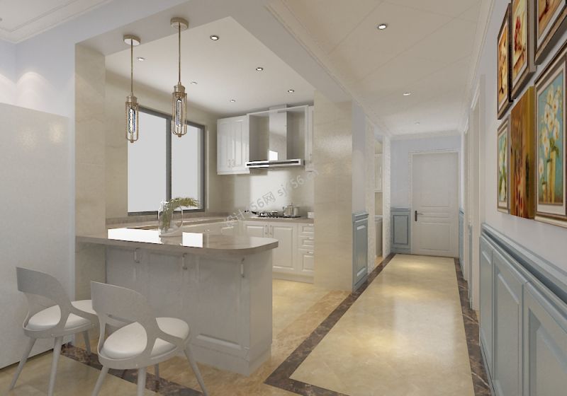 简欧风格115平米三居室吧台吊灯装潢效果图