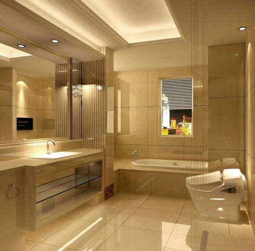 4.有些卫浴间由于在房间的内室,可能采光不足。为了弥补这个缺点,卫生间一般可选用防水型日光壁灯或防爆型白炽吊灯,增强浴室照明的能力以弥补自然采光的不足。