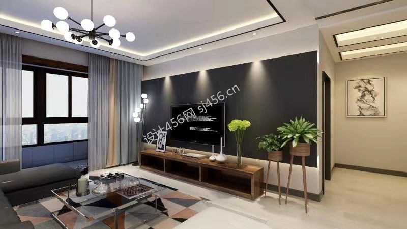 137平米现代风格客厅电视墙装修图片