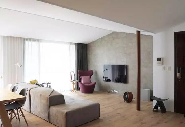 玄关与客厅之间没有最隔断设计,玄关柜嵌入墙面,统一整体格调,另一侧的实木柱设计师玄关处的点睛之笔。