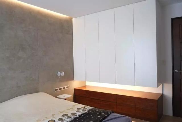 卧室空间不大,衣柜采用吊柜设计,简约大气。隐藏式灯带让空间看起来精致又时尚。