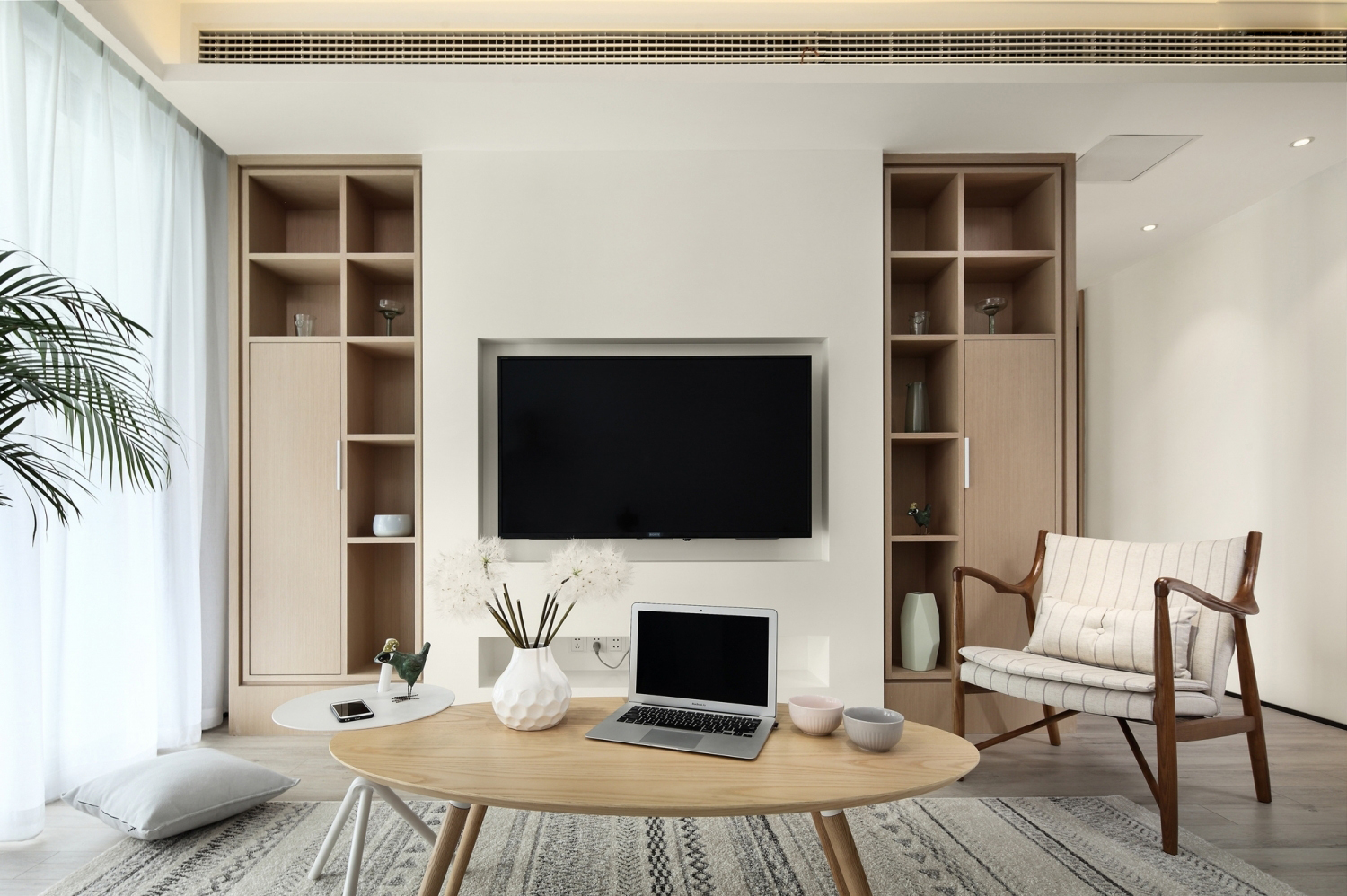 一般来说电视背景墙不仅有装饰功能,还可以将它设计成极强的收纳空间。通常一个好的电视背景墙,既可以让使用起来方便,也可以作为兴趣爱好的展示与主墙装饰。