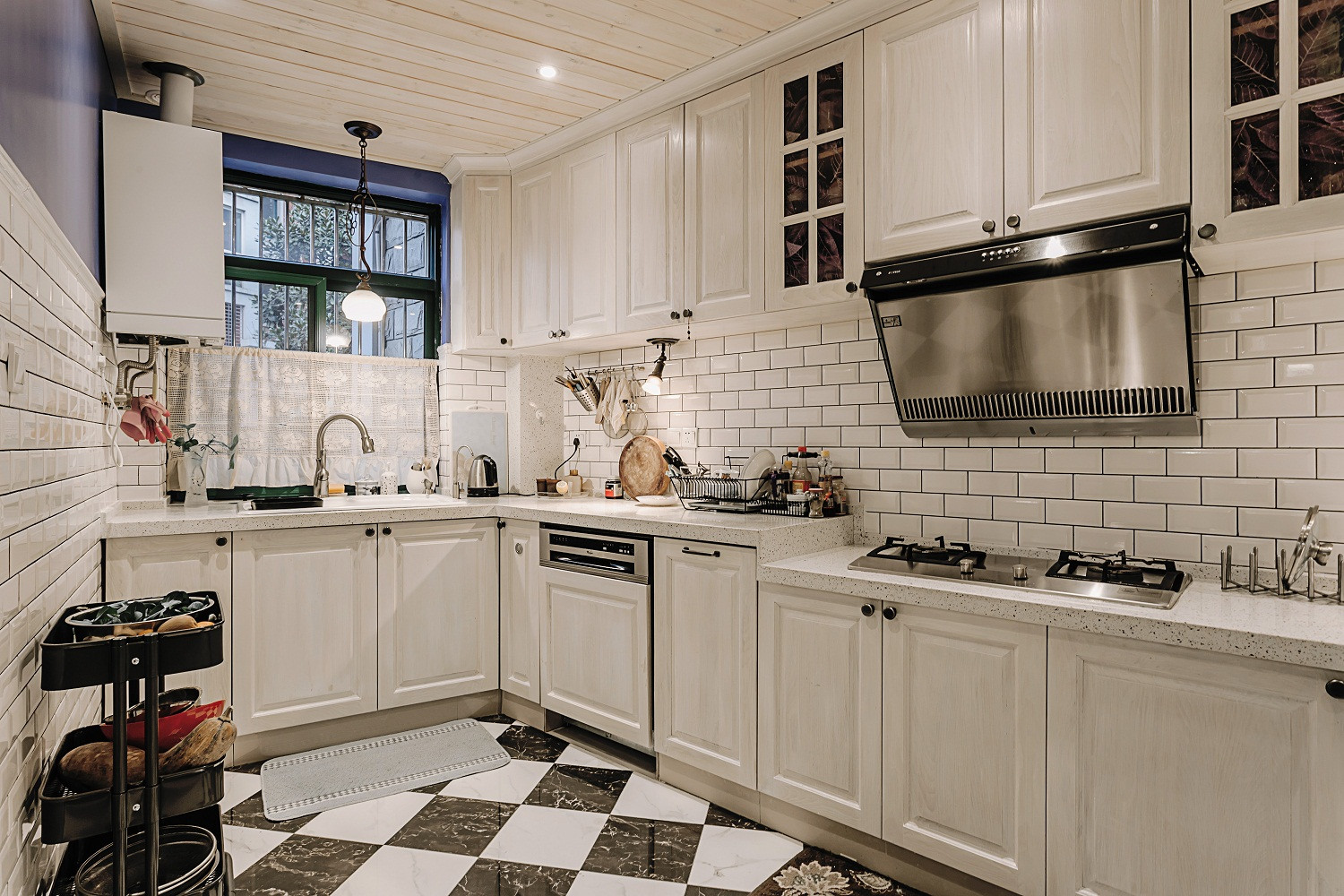 厨房灯光需分成两个层次:一个是对整个厨房的照明,一个是对洗涤、准备、汪操作的照明。后者一般在吊柜下部布置局部灯光,设置方便的开关装置,还有现在的性能良好的抽油烟机一般也照有灯光、对烹饪是足够了。