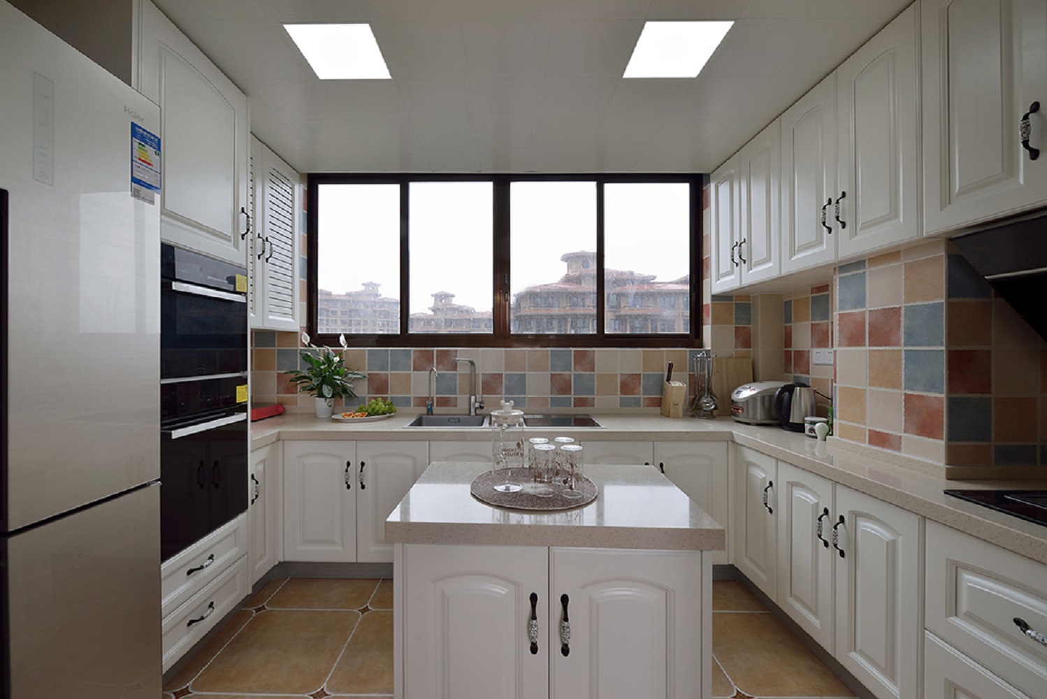 厨房的面积一般为6~10平方米比较适中,厨房装修要求既不显得拥挤又能够合理地运用空间。除此之外,采光与通风是厨房装修尤其需要注意的问题,如果厨房面积够大,还可以设置餐桌,以屏风分割空间。