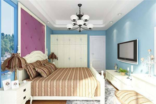 以蓝色为主色调的色彩搭配,是让人非常舒畅的一种装修风格,蓝色属于冷色系,在视觉上给人缩小和退后的感觉,恰到好处的应用,可以让空间看起来更加的开阔。紫色是与蓝色相近的色系,两个一起搭配使用时,会给人一种梦幻的感觉。