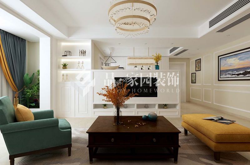 美式风格104平米客厅电视墙效果图欣赏
