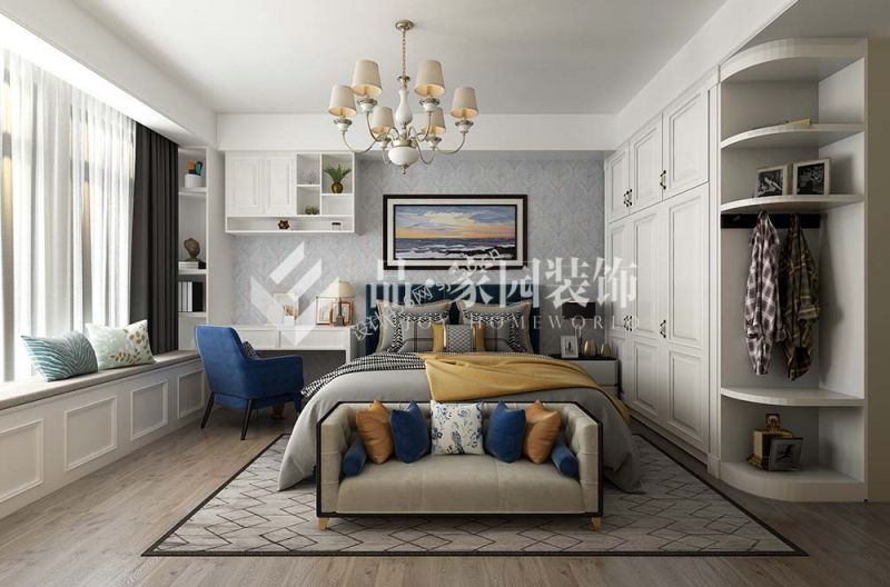 美式风格104平米卧室床效果图欣赏