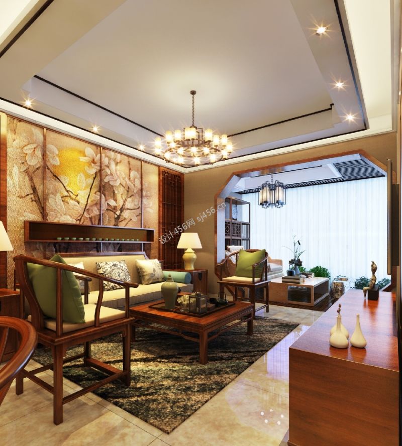 110平米中式风格客厅吊灯装修图片