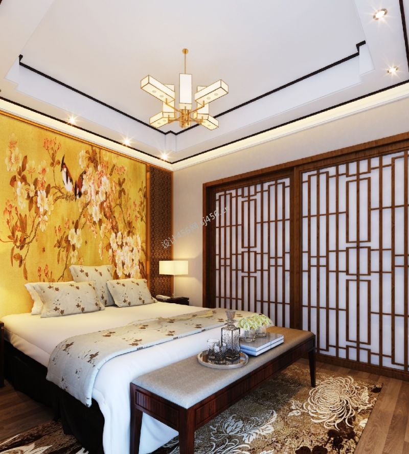 110平米中式风格卧室背景墙装修图片