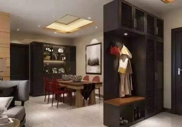 对于比较注重隐私感的业主来说,为了化解进门就是客餐厅的尴尬,我们不妨造一个“伪玄关”。