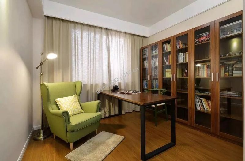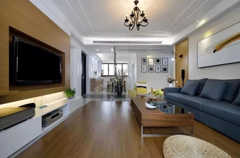 设计理念: 这是一套面积为140㎡的大户型,格局为四房两厅,设计风格带有北欧的味道,又带有一些新中式的味道。客厅的电视墙,地板的铺贴,还有家居的选购都是偏向深木色的,然后搭配比较年轻化的软装,如蓝色布艺沙发、绿色窗帘等,呈现出一个稳重又不拘谨,让人放松的家。 这是一套面积为140㎡的大户型,格局为四房两厅,设计风格带有北欧的味道,又带有一些新中式的味道。客厅的电视墙,地板的铺贴,还有家居的选购都是偏向深木色的,然后搭配比较年轻化的软装,如蓝色布艺沙发、绿色窗帘等,呈现出一个稳重又不拘谨,让人放松的家。