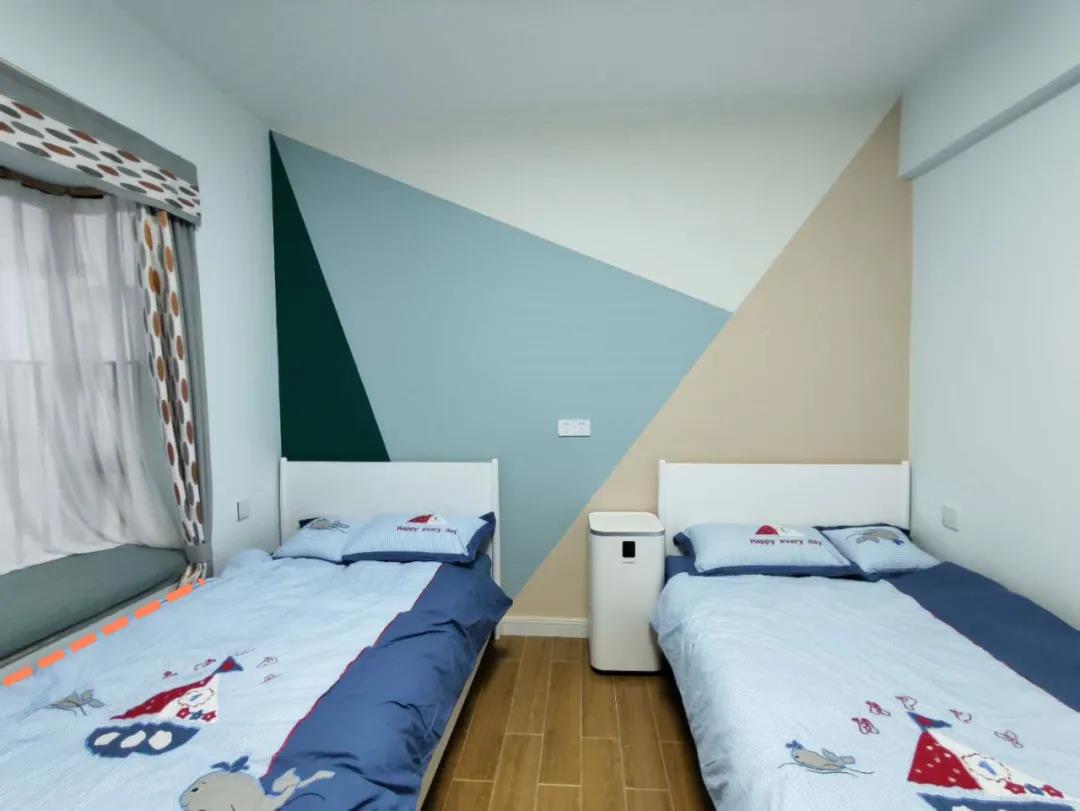 ▲这是我家儿童房实景照片,各位可能会觉得奇怪:床靠墙放了,为何窗帘还可以靠窗安装呢?
