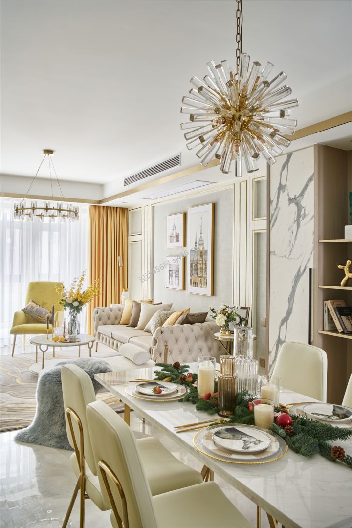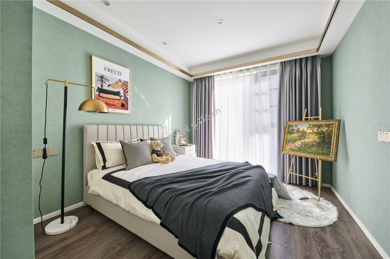轻奢风格120平米三室两厅卧室吊灯装修效果图