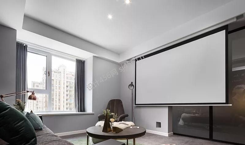 89平现代简约客厅投影仪二居家装效果图