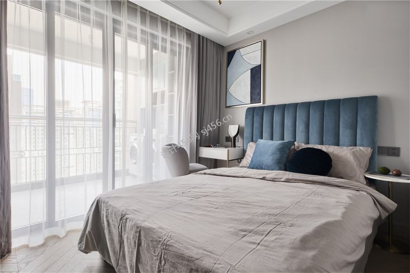 美式风三居室卧室床头软包设计效果图
