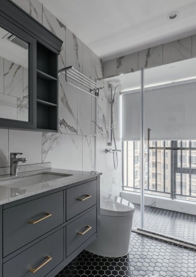 美式风三居室卫生间玻璃设计效果图