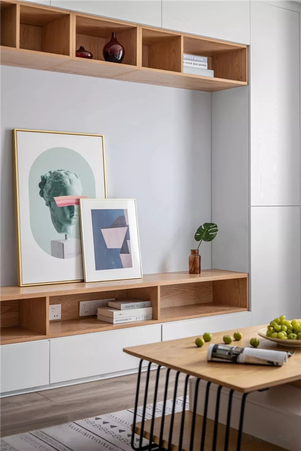 白色的墙面融入原木的元素,浑然天成的色彩搭配,给人一种清新自然的舒适感。