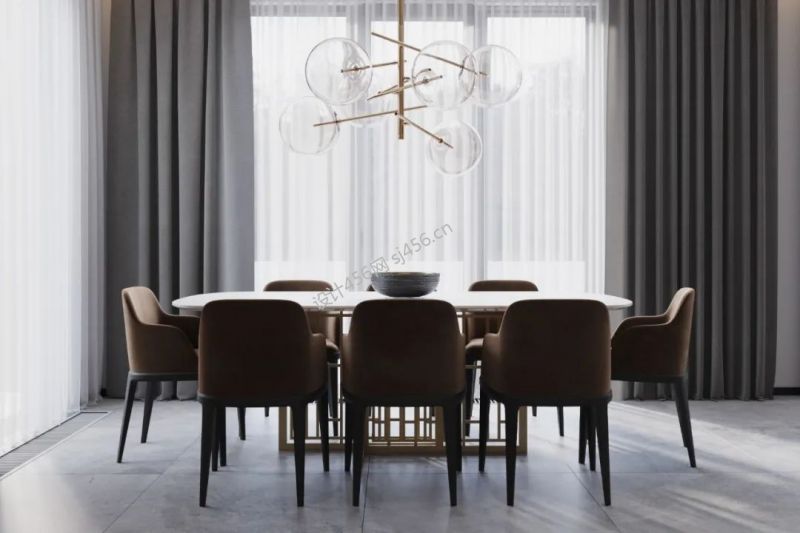 140平米三居室现代简约风格餐厅窗帘布置设计案例